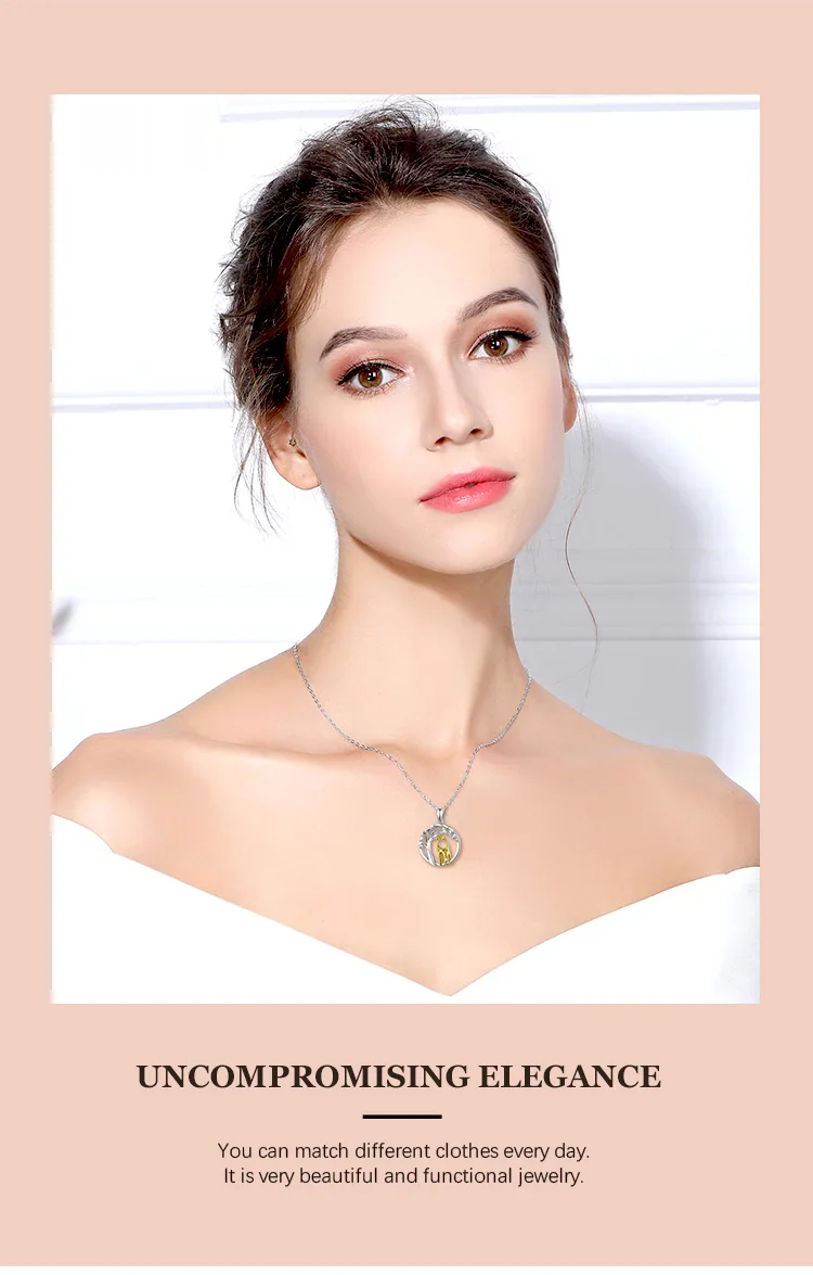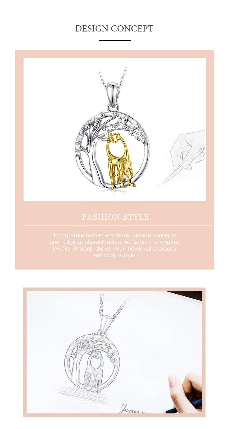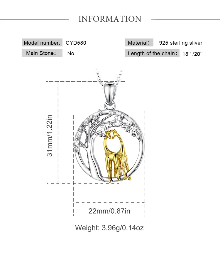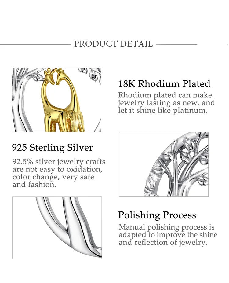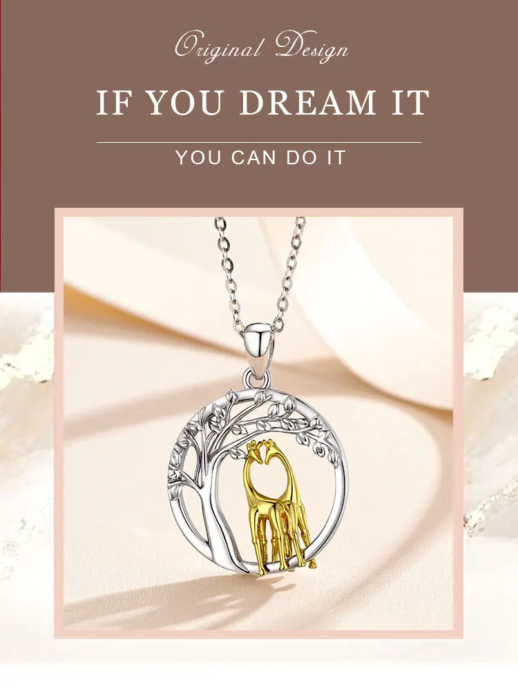 925 Sterling Silver Golden Giraffe Couple & Tree of Life Pendant Necklace