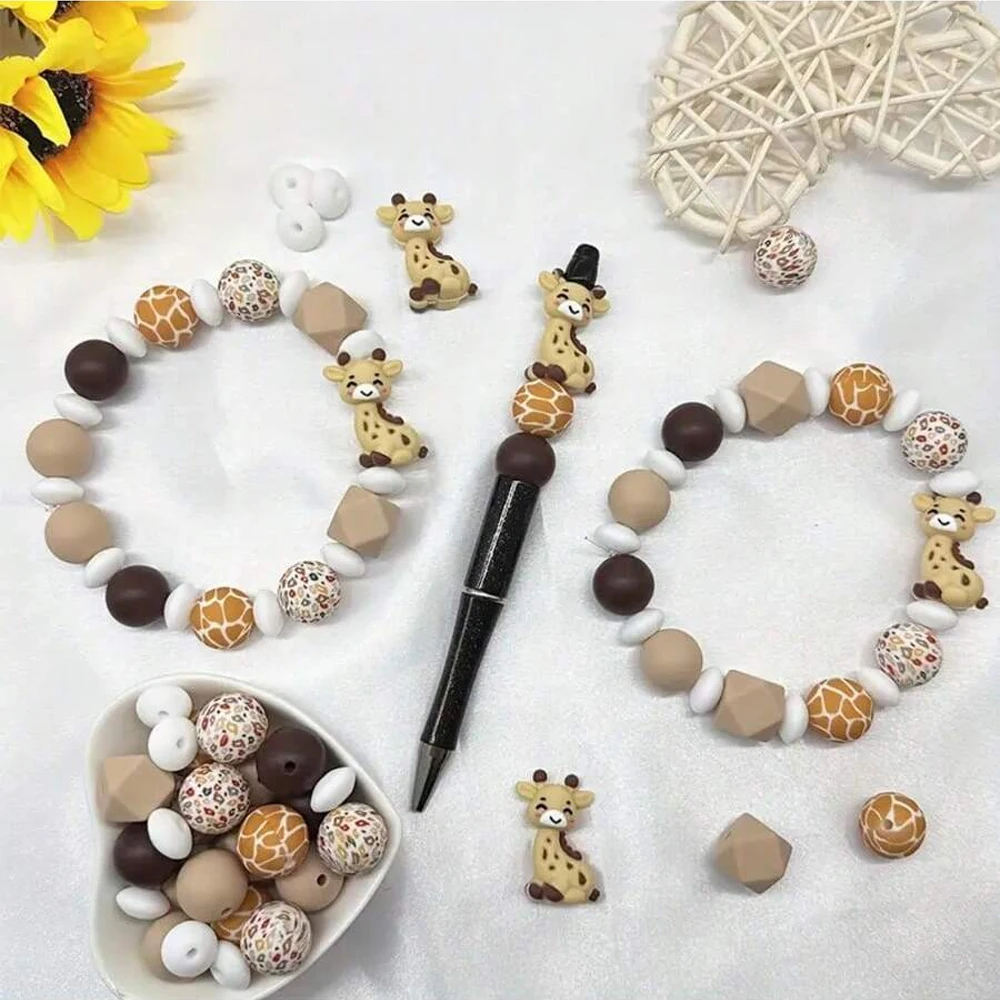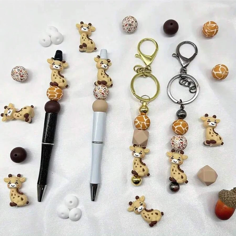 30PCS 3D Giraffe beads handmade bead pens DIY keychain