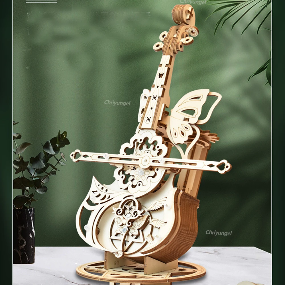 3D Puzzle Wooden Cello Model DIY Music Box Room Decor