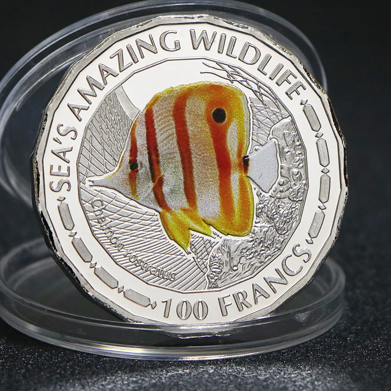8 Colorful Silver Plated Wildlife Africa Fish Lion Commemorative Coins