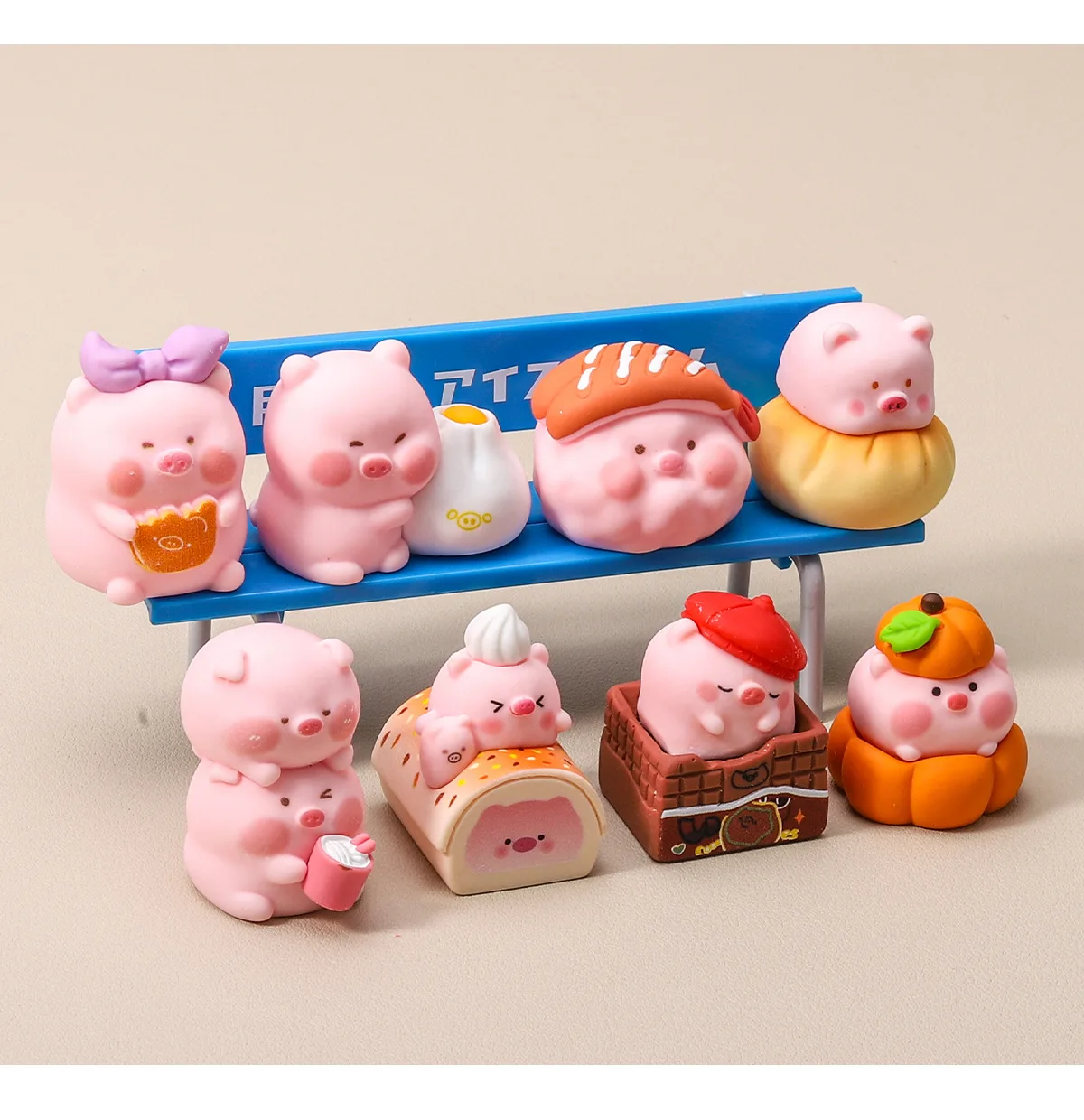 8pcs/Set Pig Figure Toy Food Series Figurine