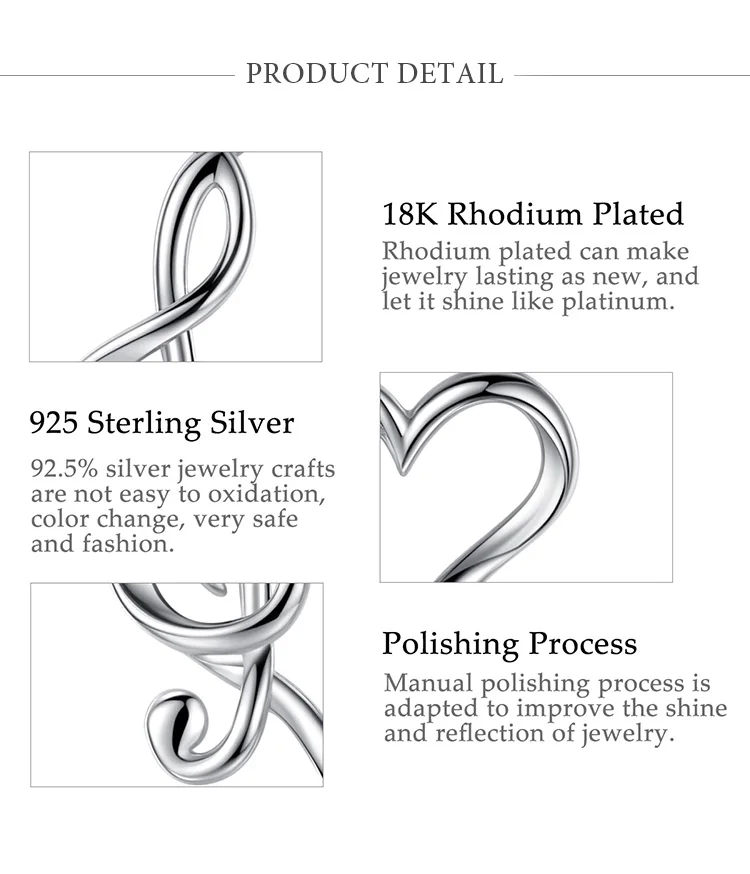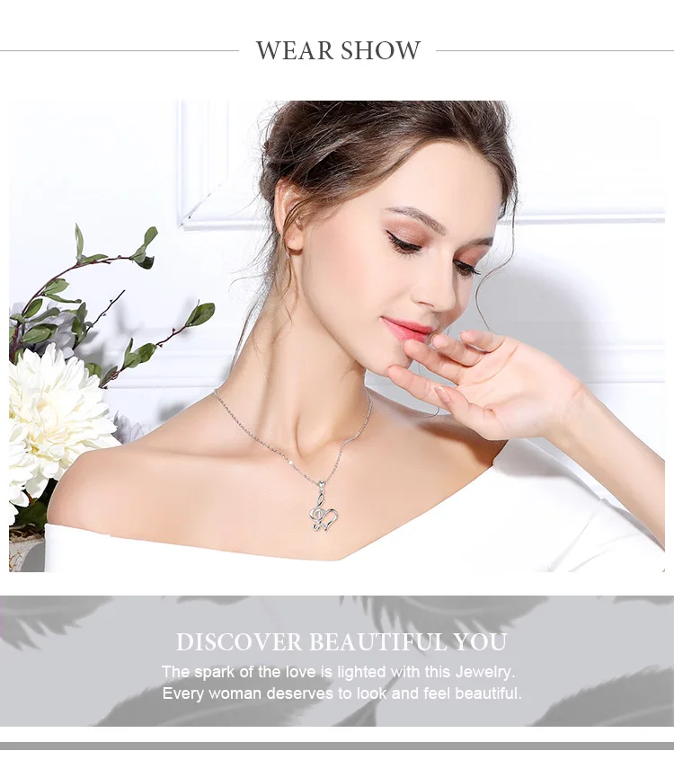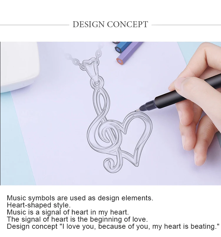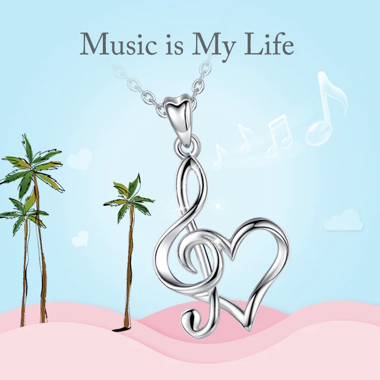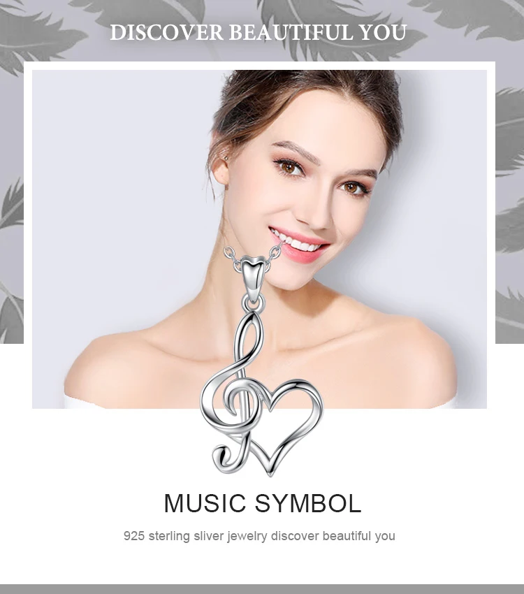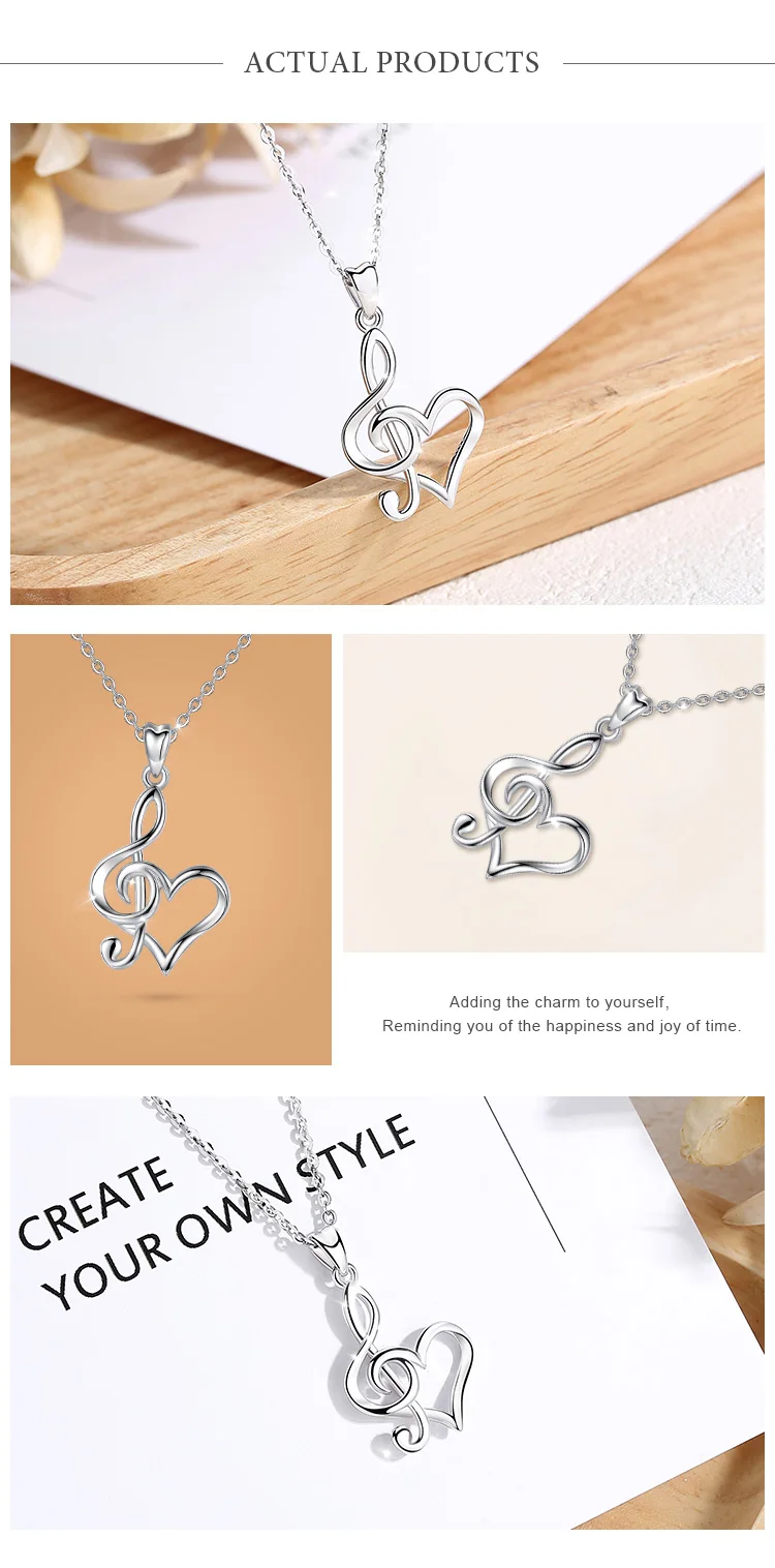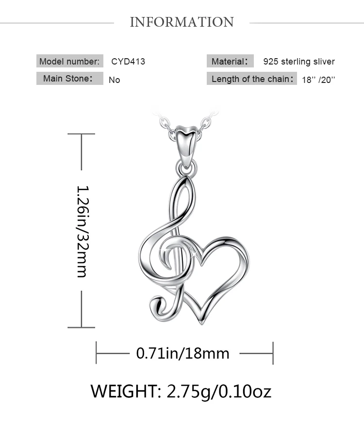 925 Sterling Silver Music Sign Necklace Silver Heart Pendant Gift