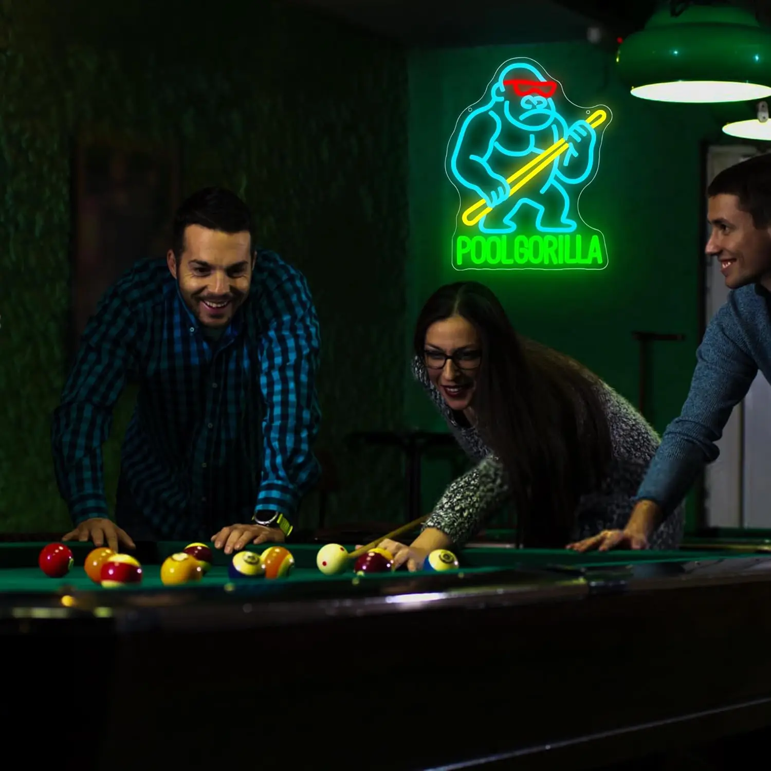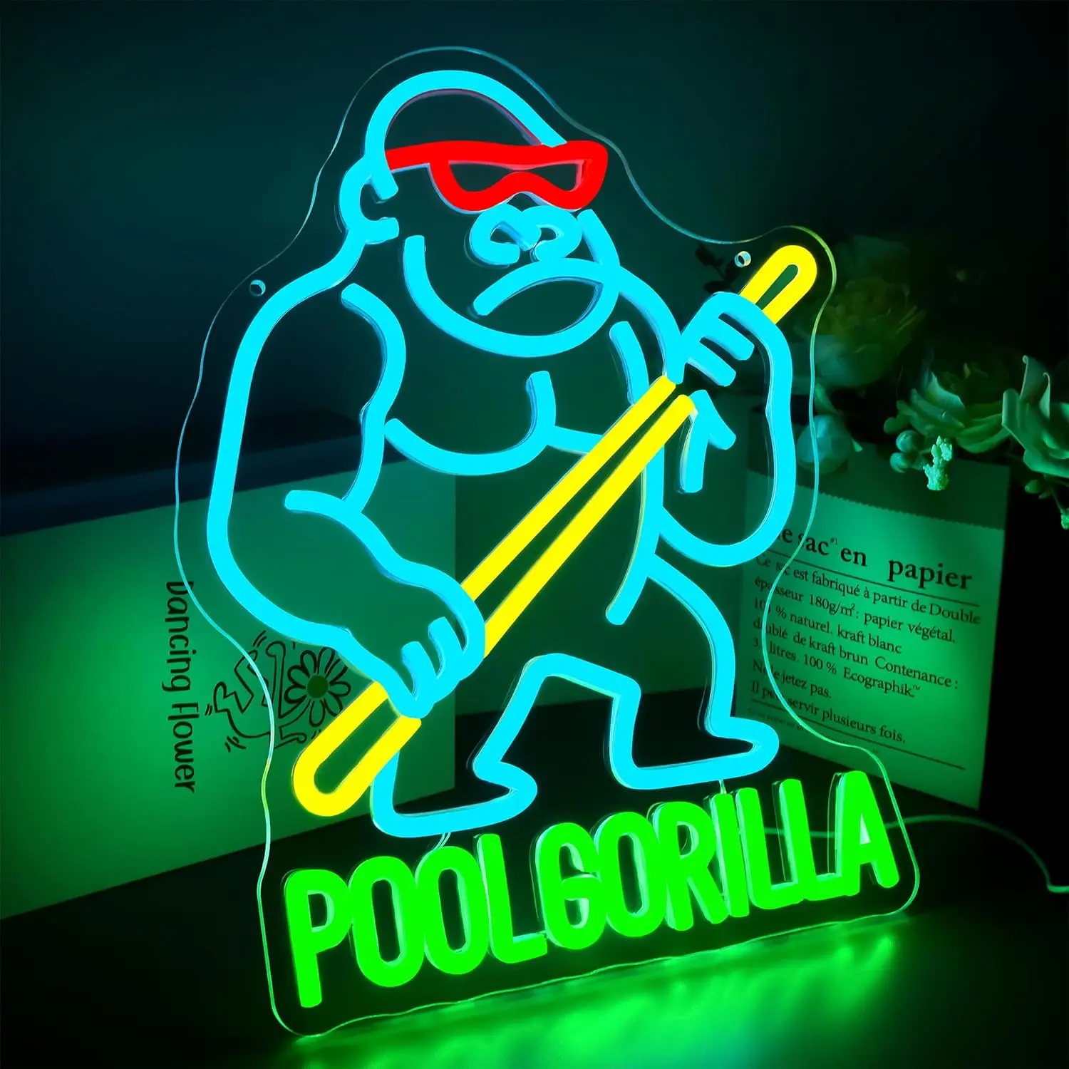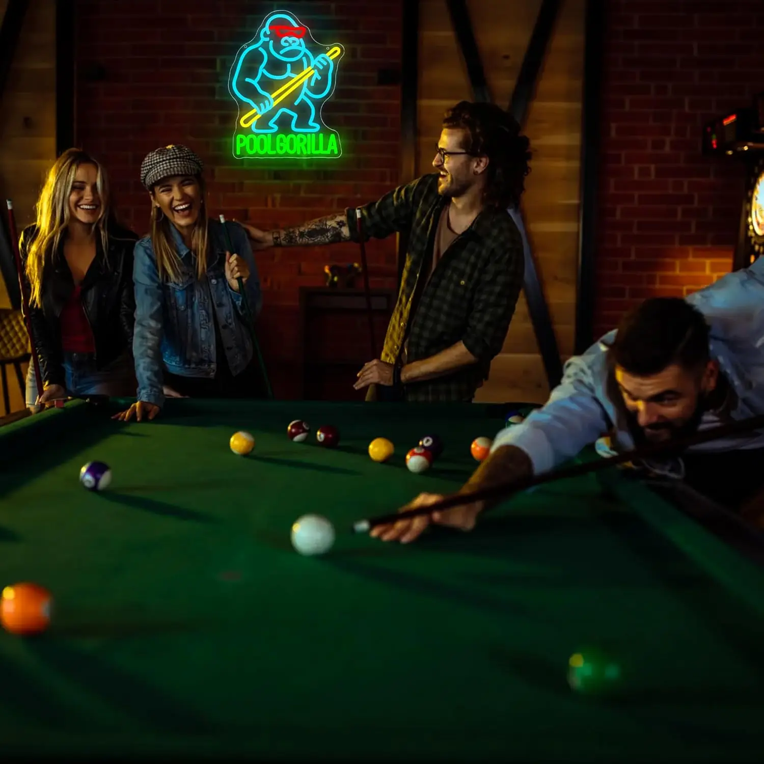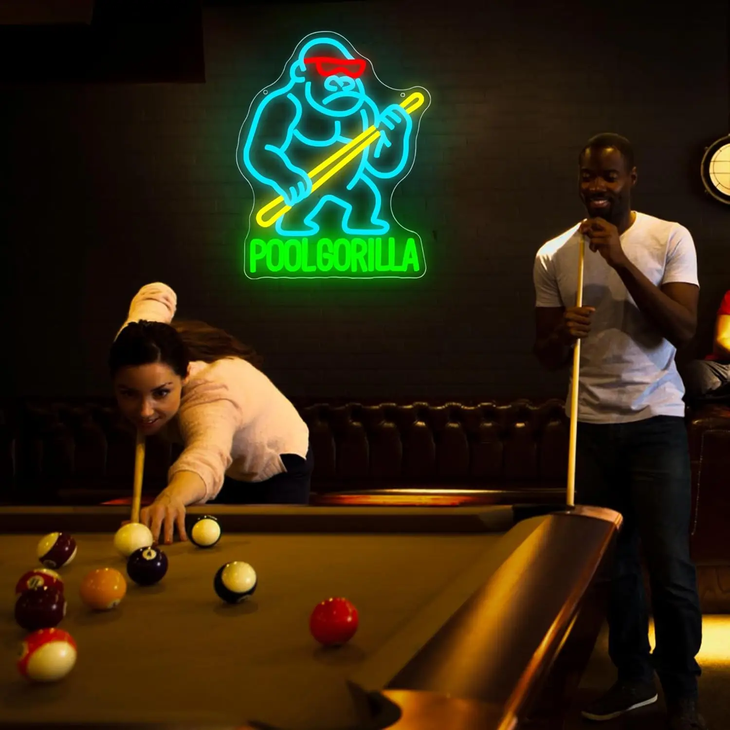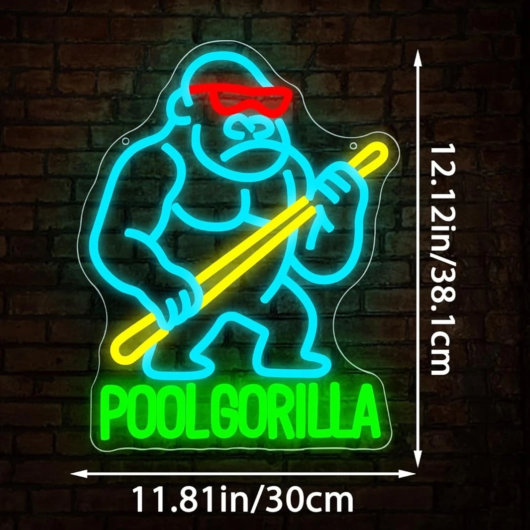 Billiards Neon Sign Dimmable Pool Gorilla LED Neon Light