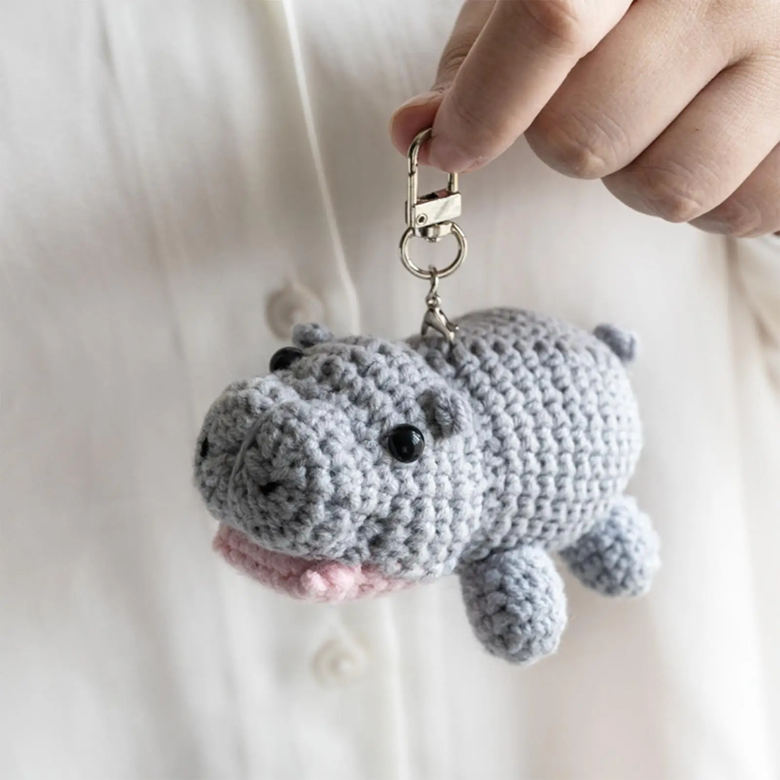 Crochet Hippo Moo Deng Handbag Pendant Keychain