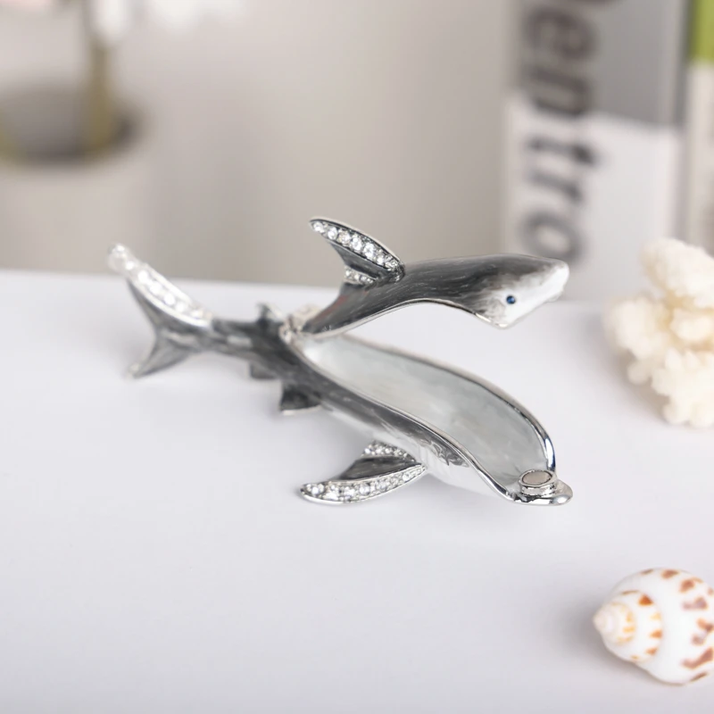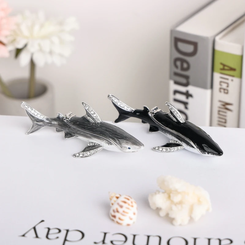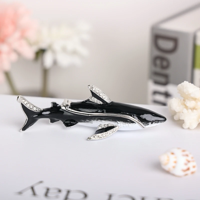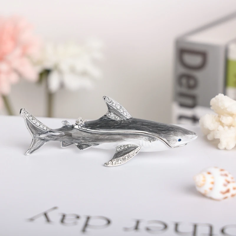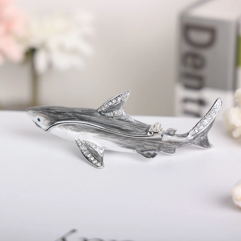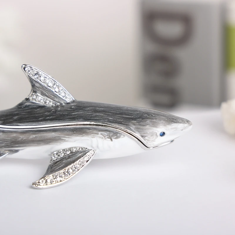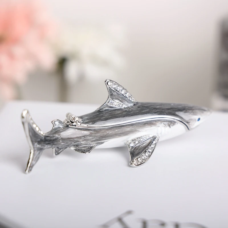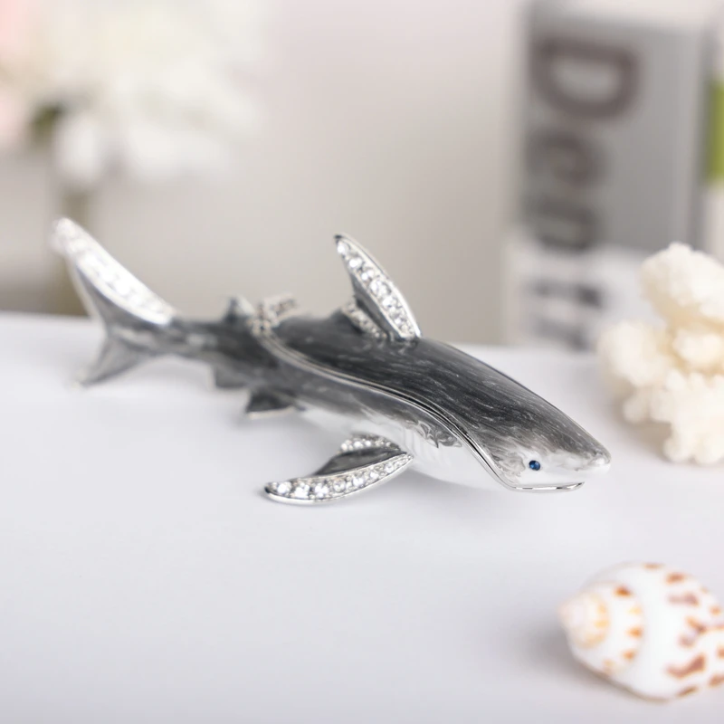 Enameled Shark Jewelry Trinket Box
