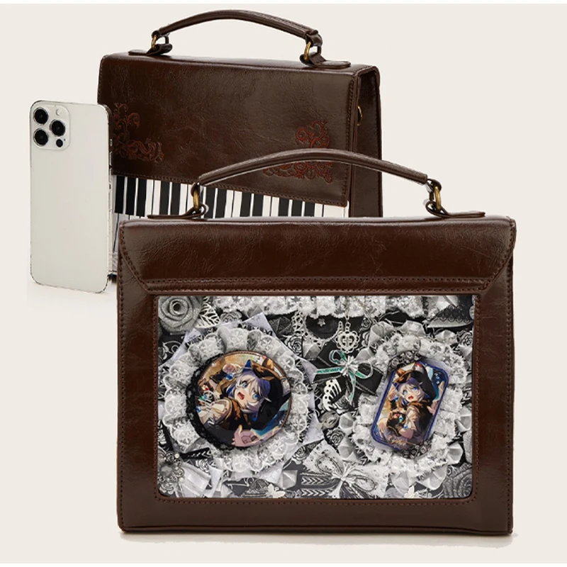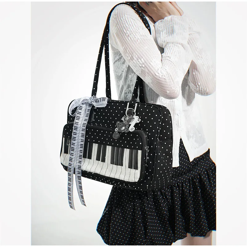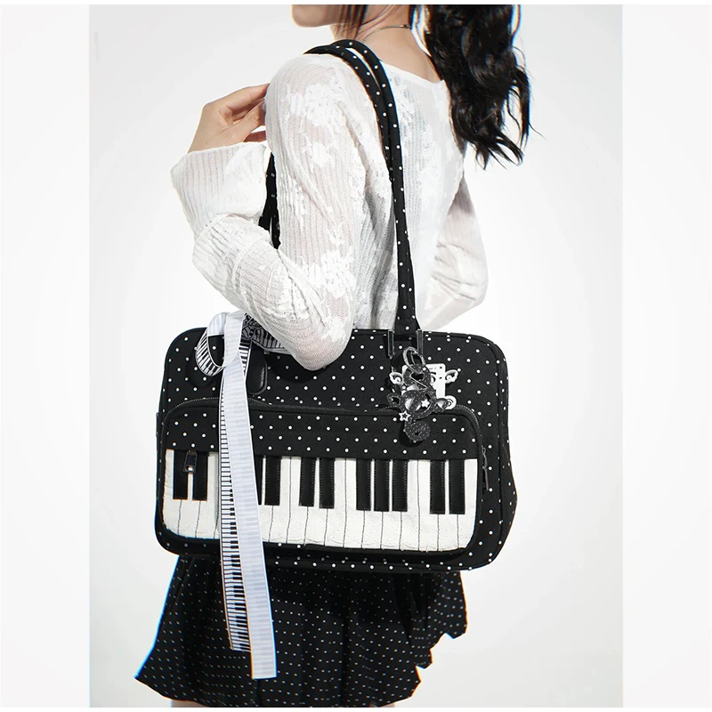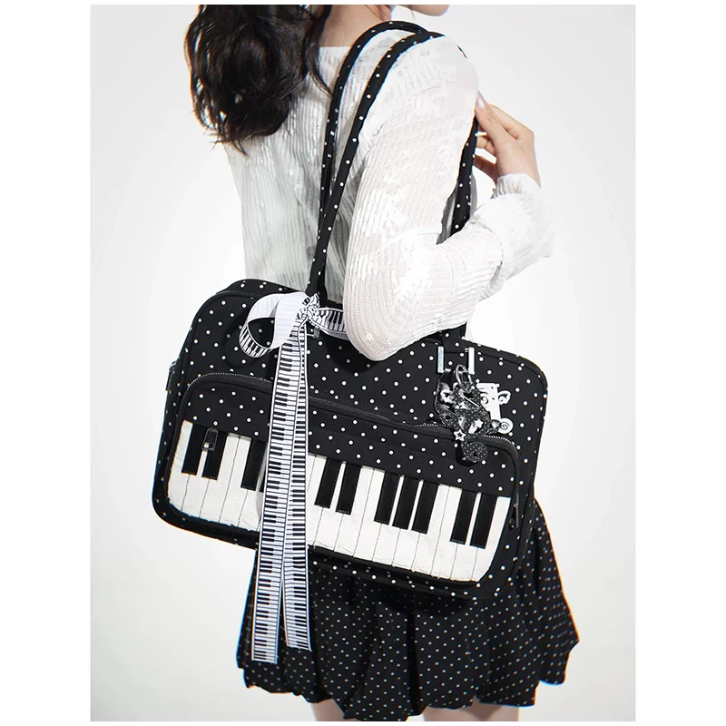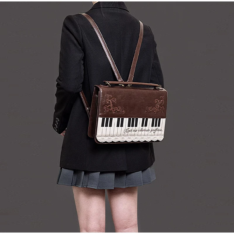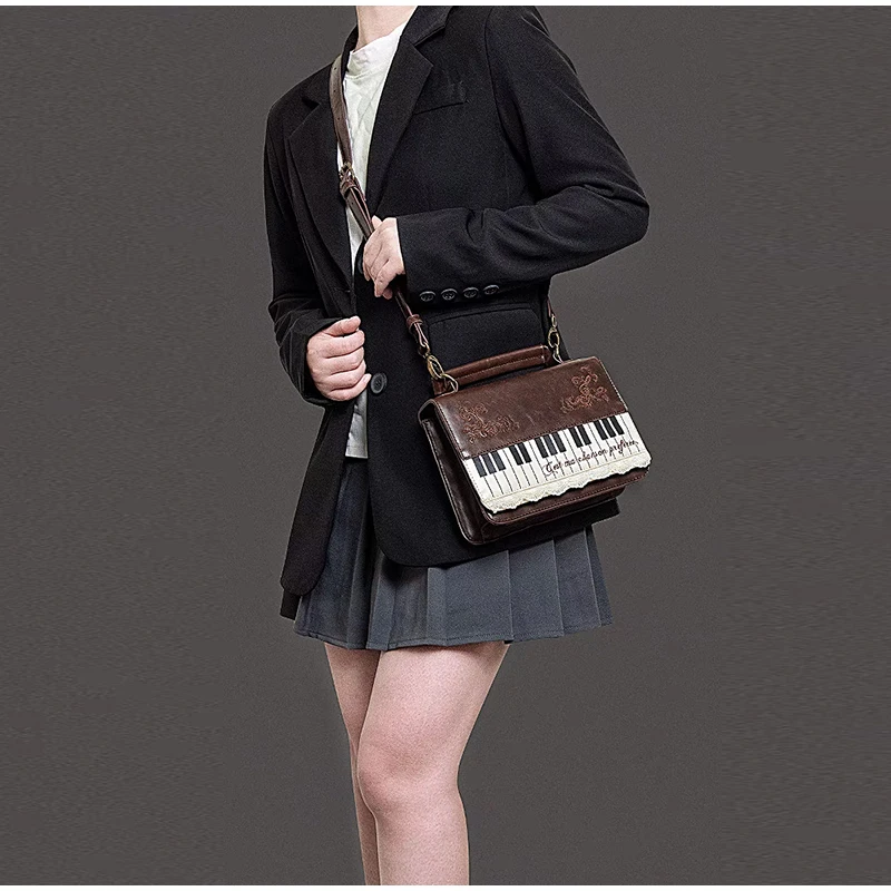 🎹 Creative piano design: PU material with lace embroidery and contrasting color stitching