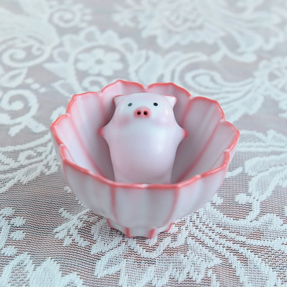 Note: It eed to pour water at a temperature above 70 degrees Celsius for the piglet to produce bubbles