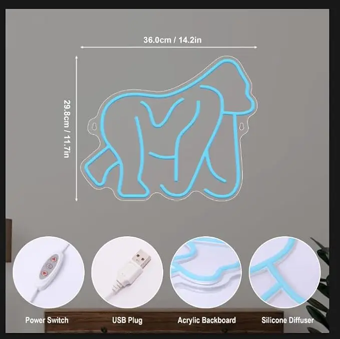 Gorillas Neon Sign Ape USB Powered LED Neon Light Wall Decor