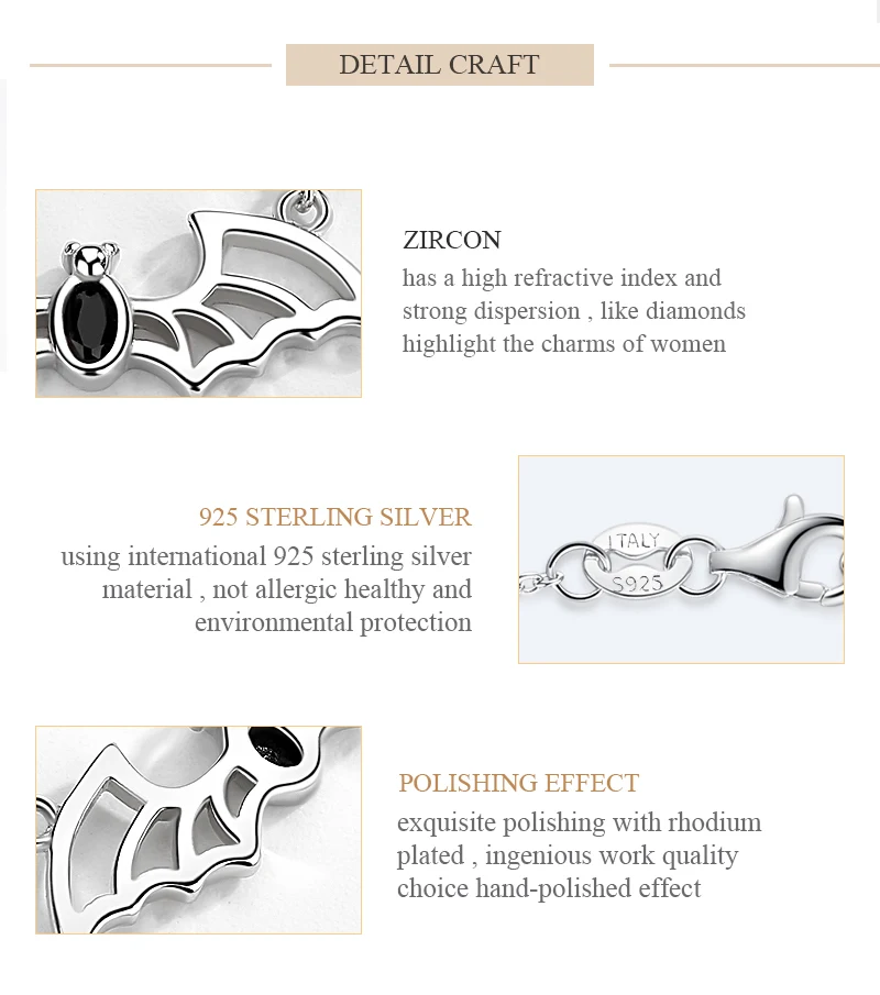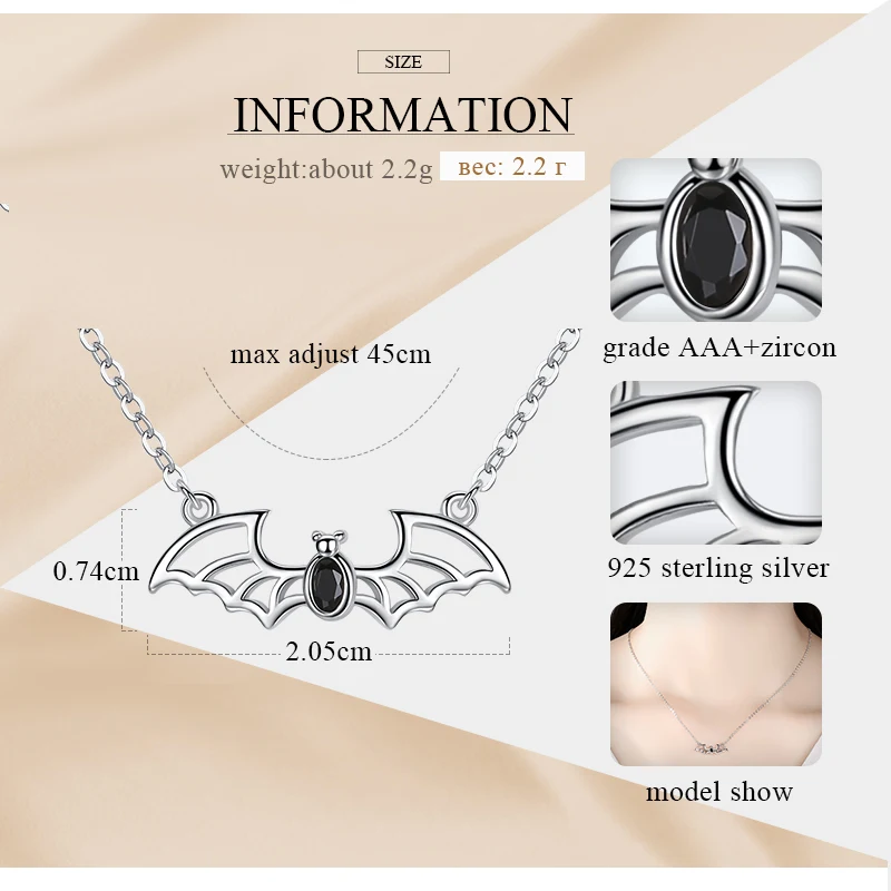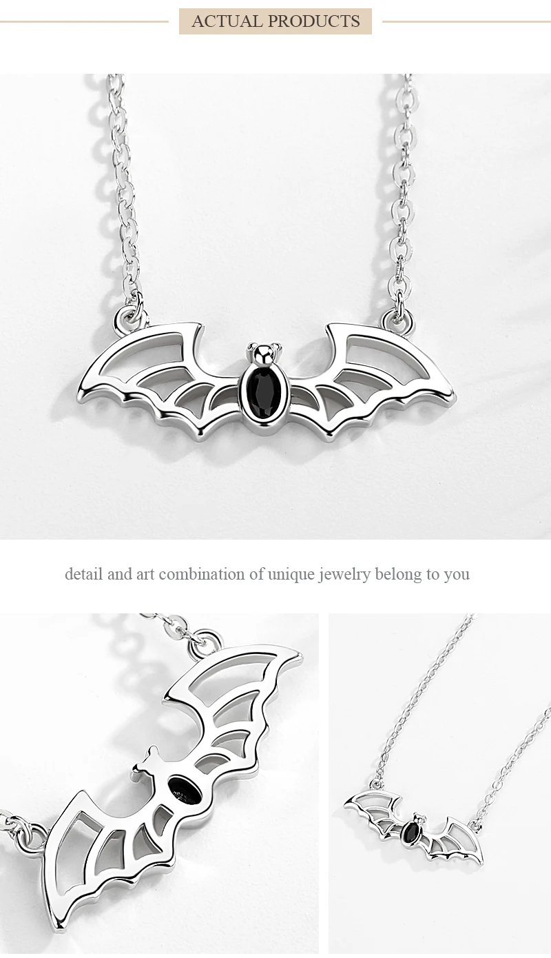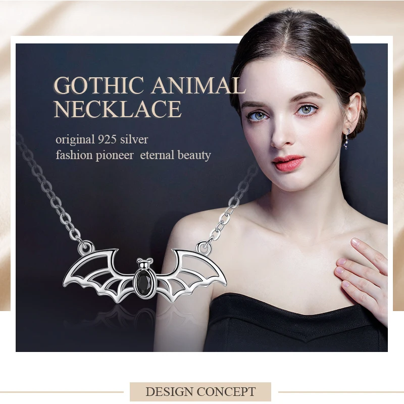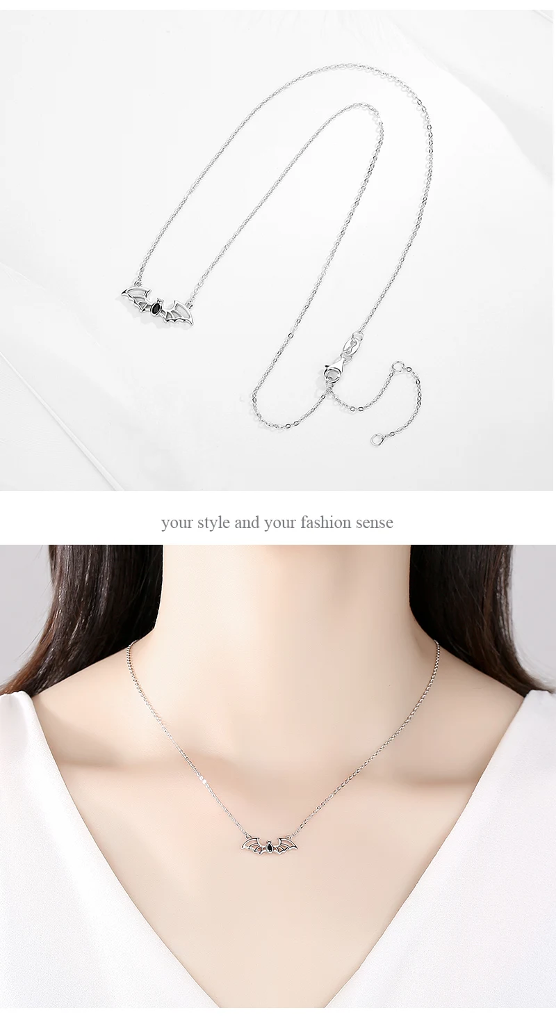 Gothic Necklace Bat 925 Sterling Silver Pendant Necklace