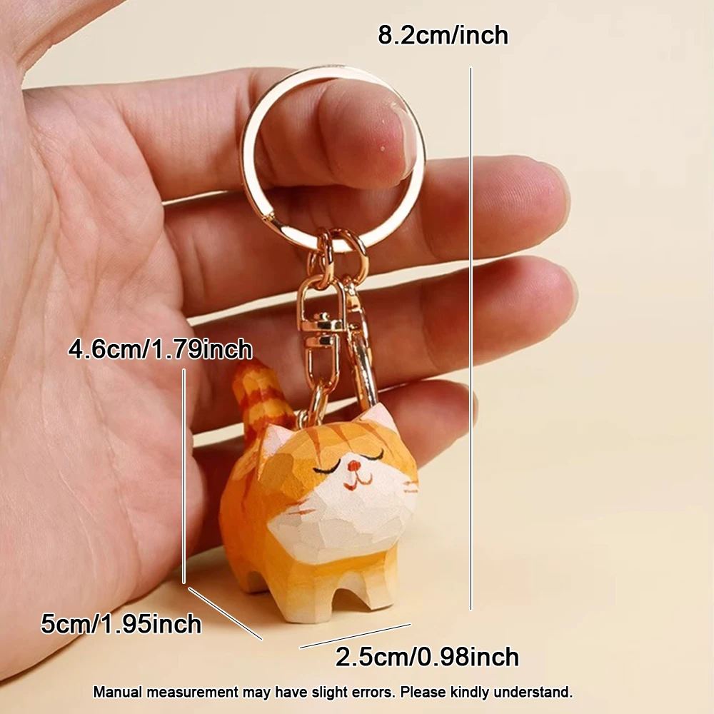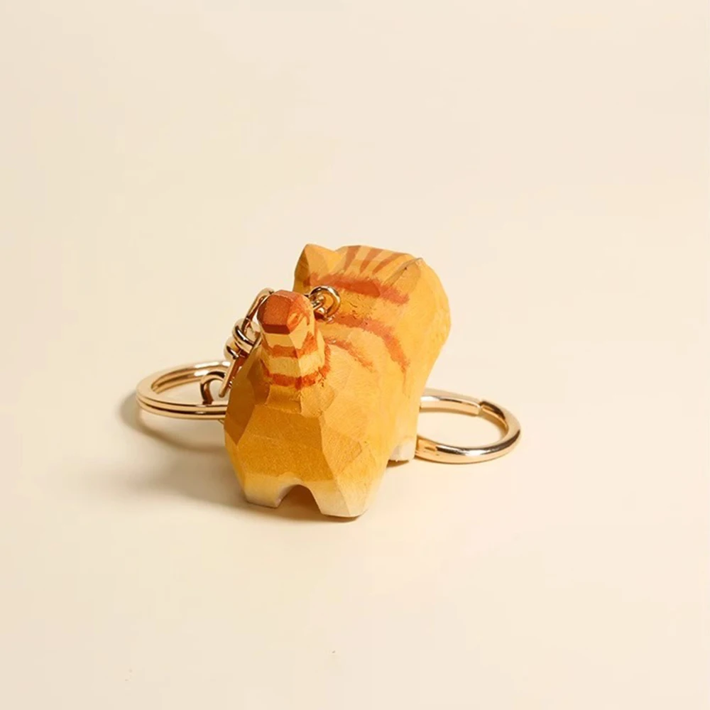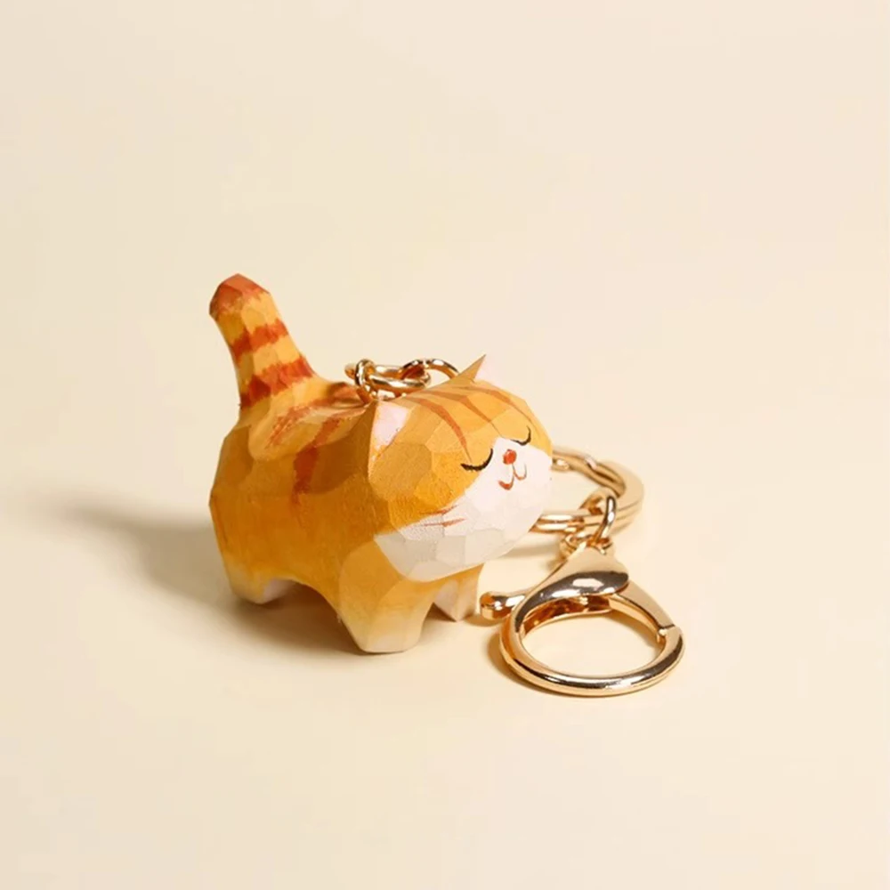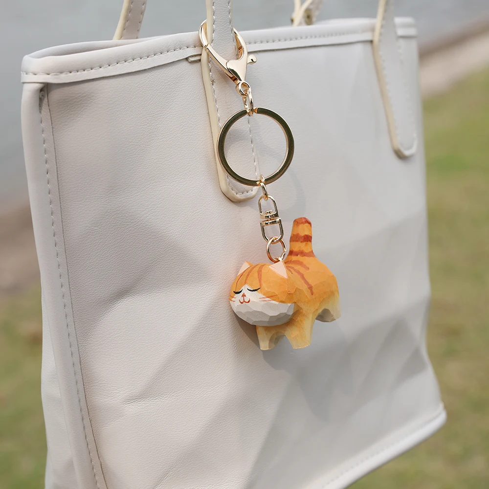 Handcrafted Wood Carving Fat Orange Cat Keychain Free Shipping