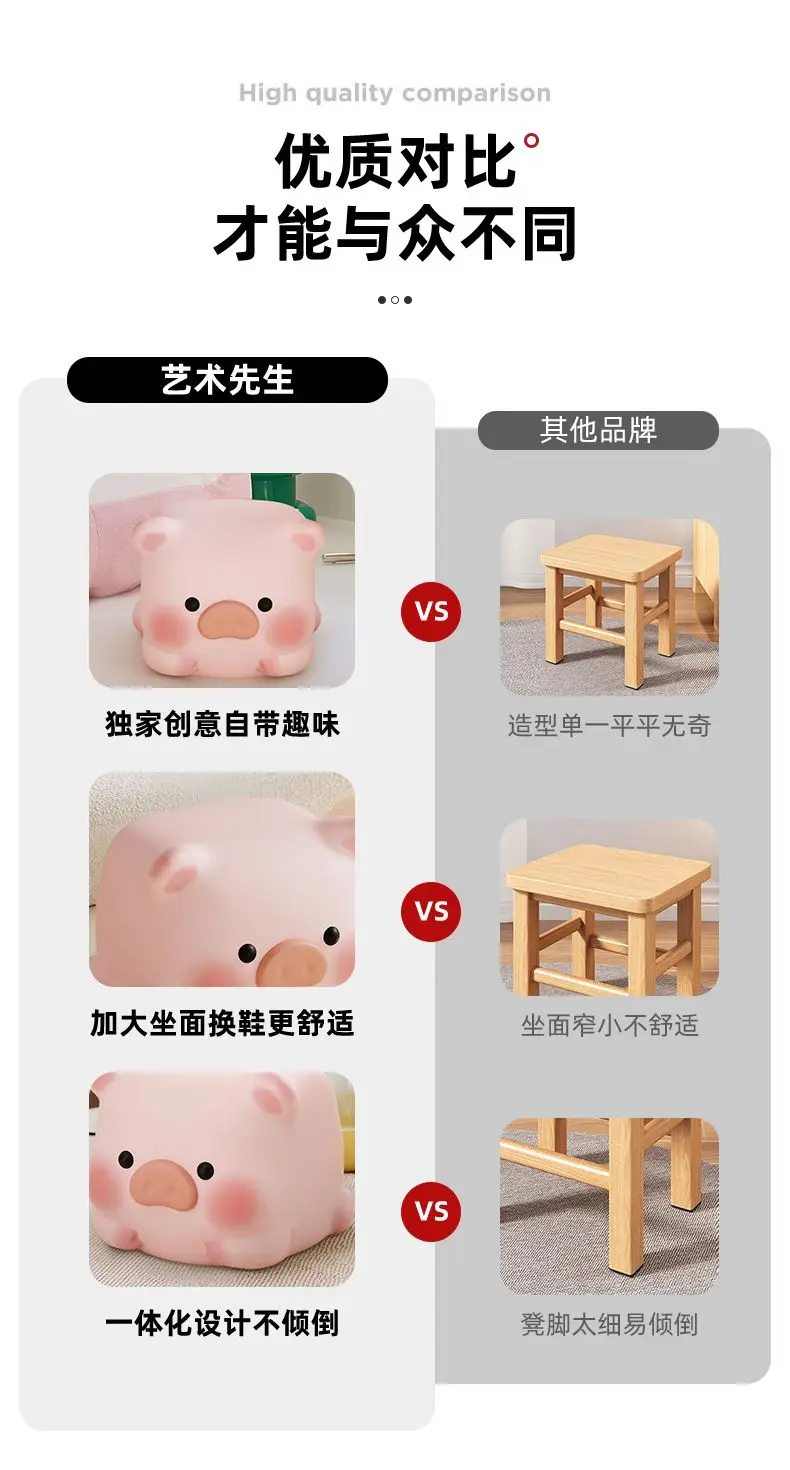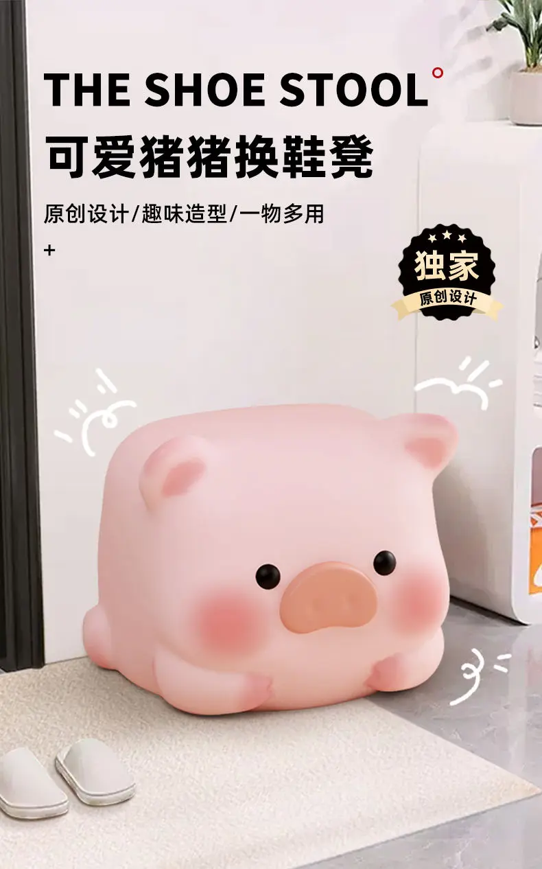 Pink Pig Stool Adorable Pig Seat for Home Shoe Wearing