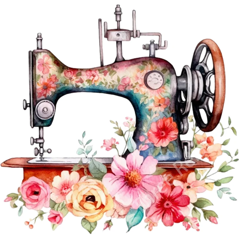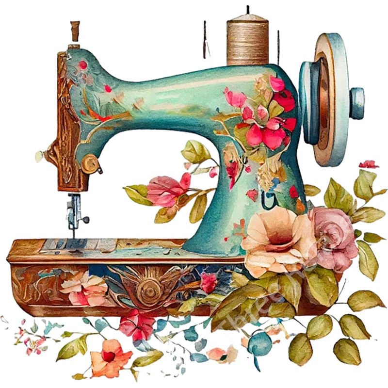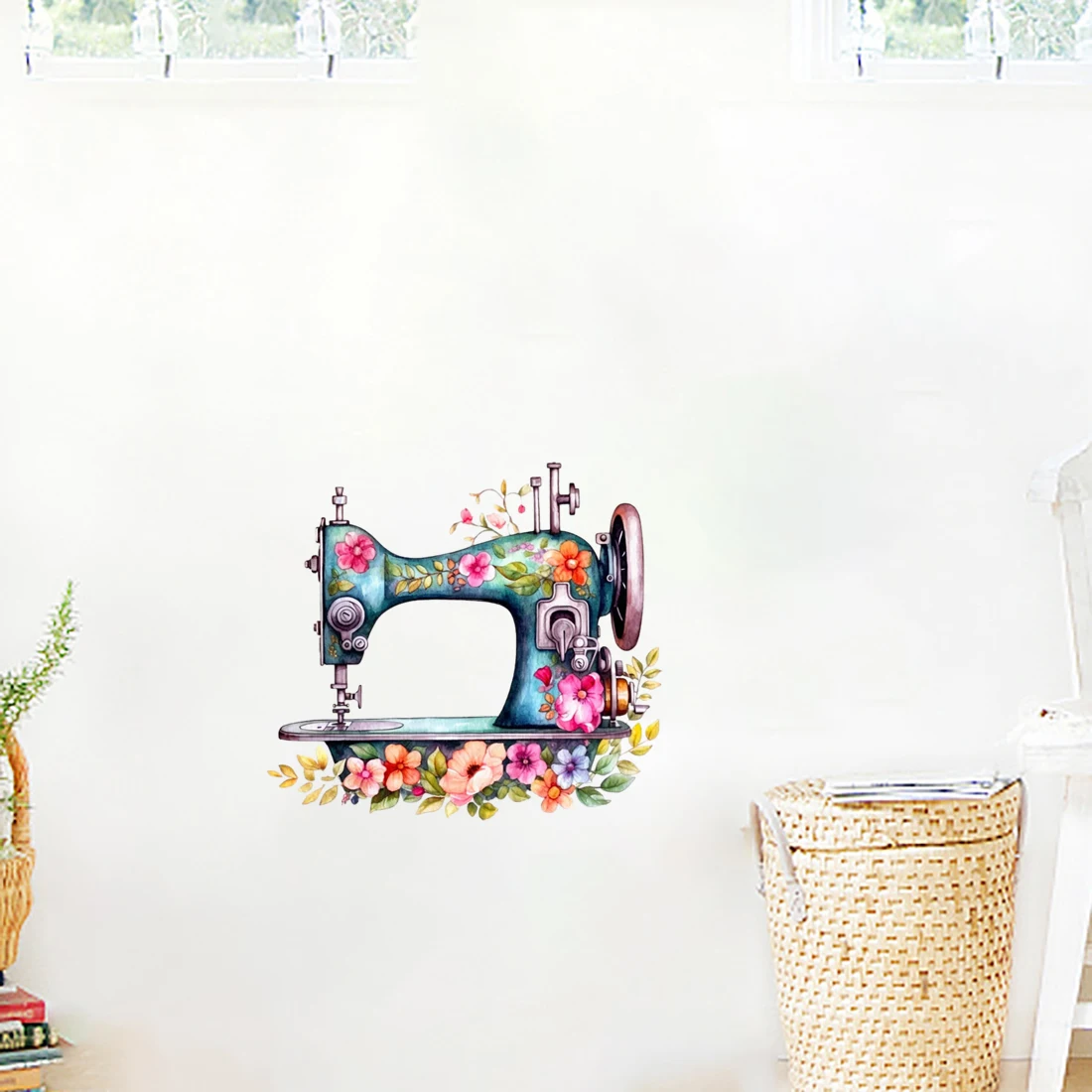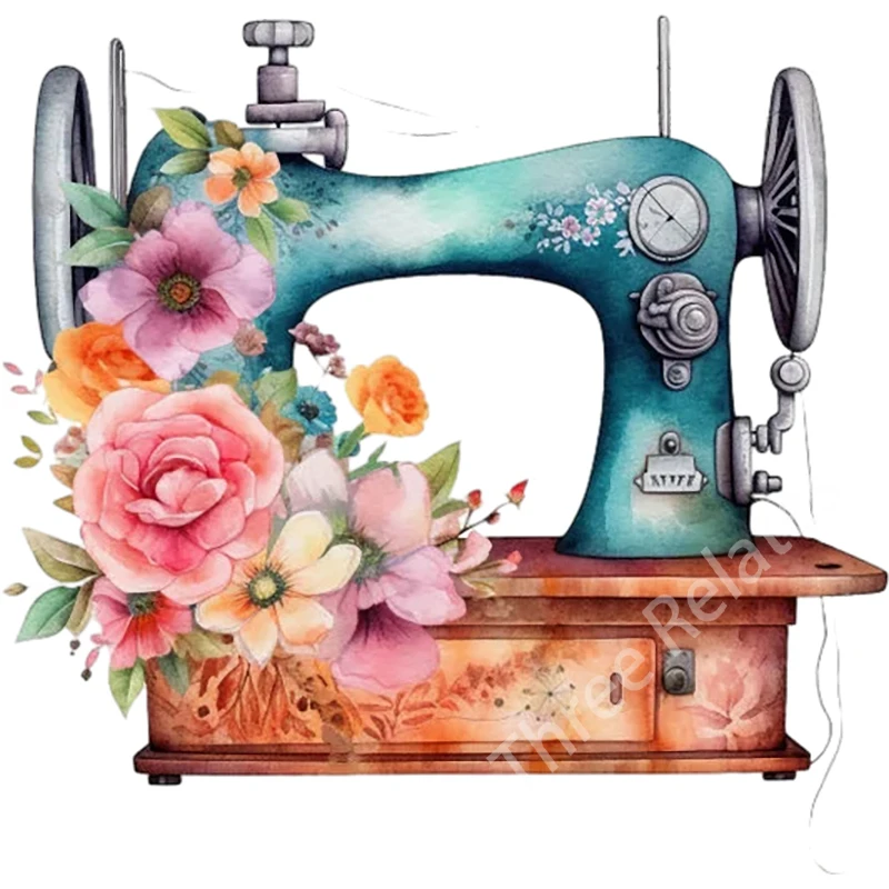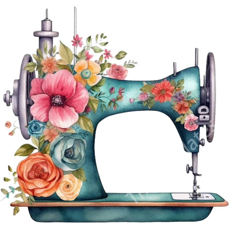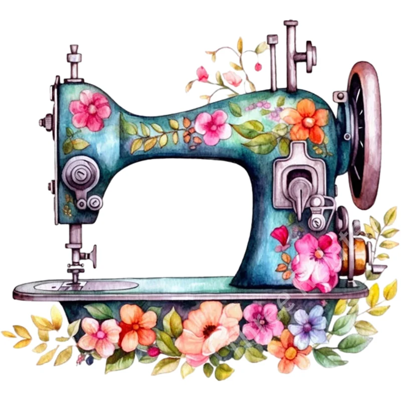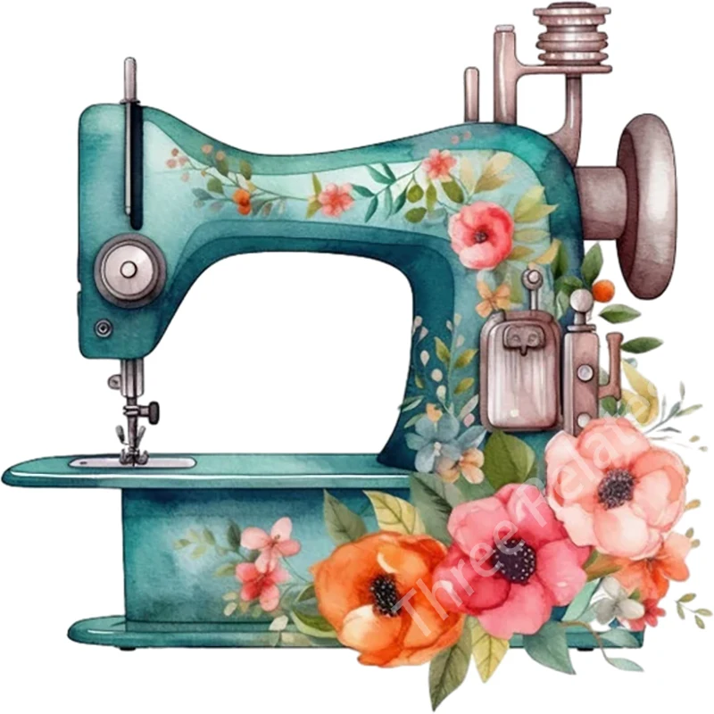 Sewing machine blooming with flowers Retro Art Stickers