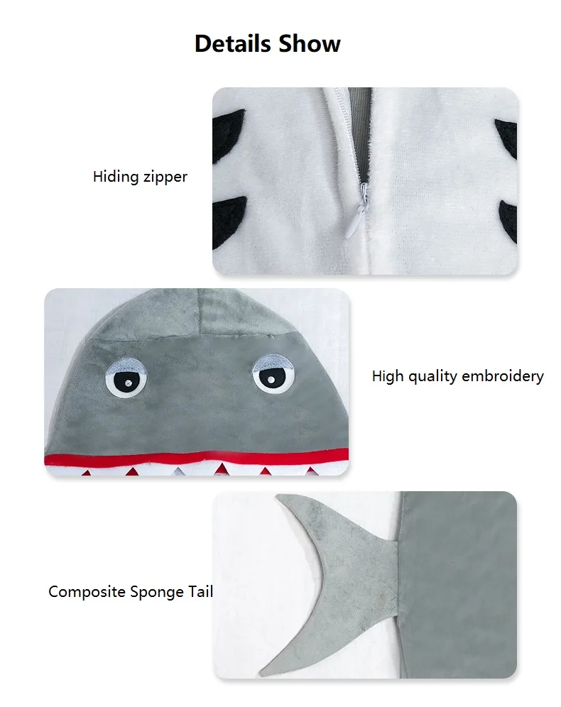 Shark Sweetie Costume Dress Boy Shark Onesie Children Mascot Hoodie Grey Shark Party