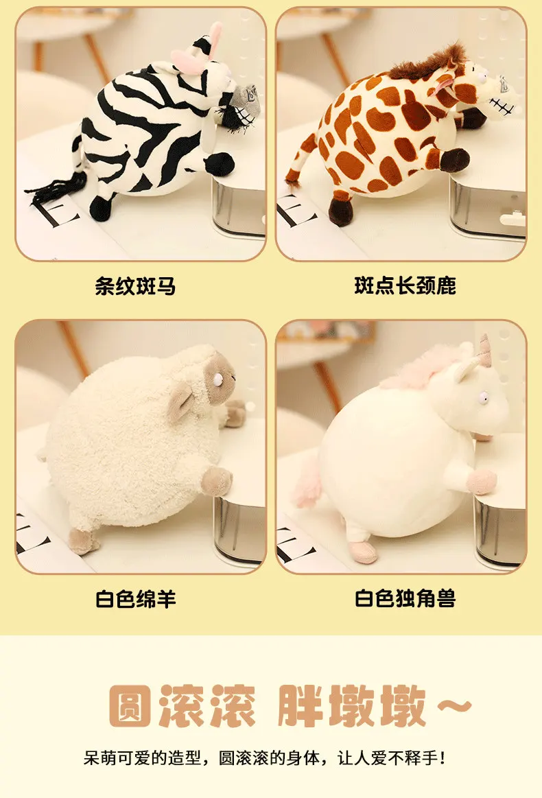 Stuffed Ball Shape Zebra Hippo Giraffe Doll