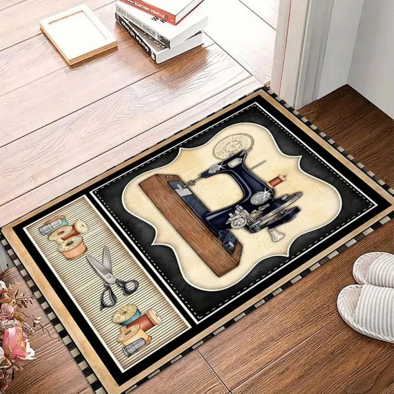 Vintage Sewing Machine Rug Non-Slip Flannel Carpet