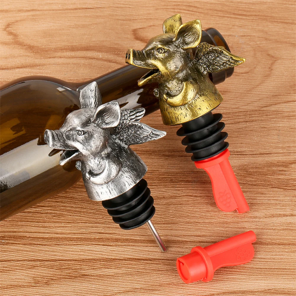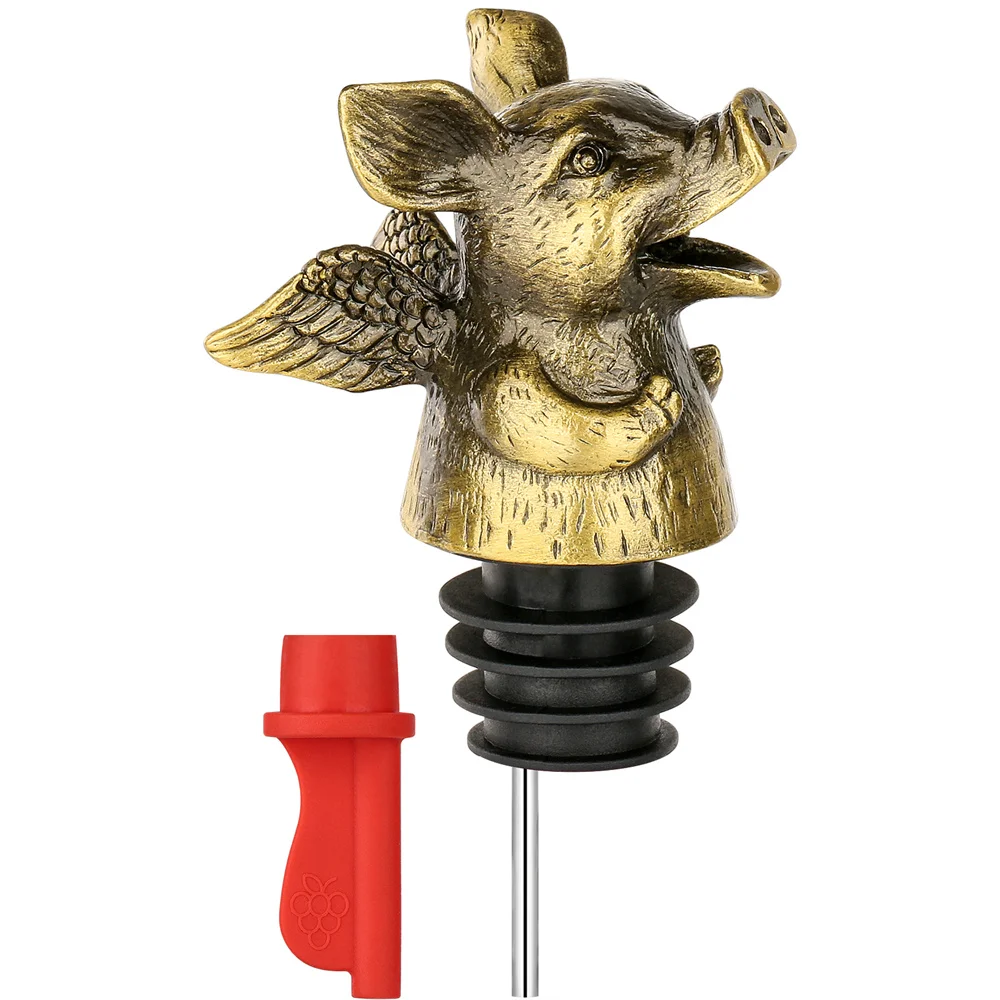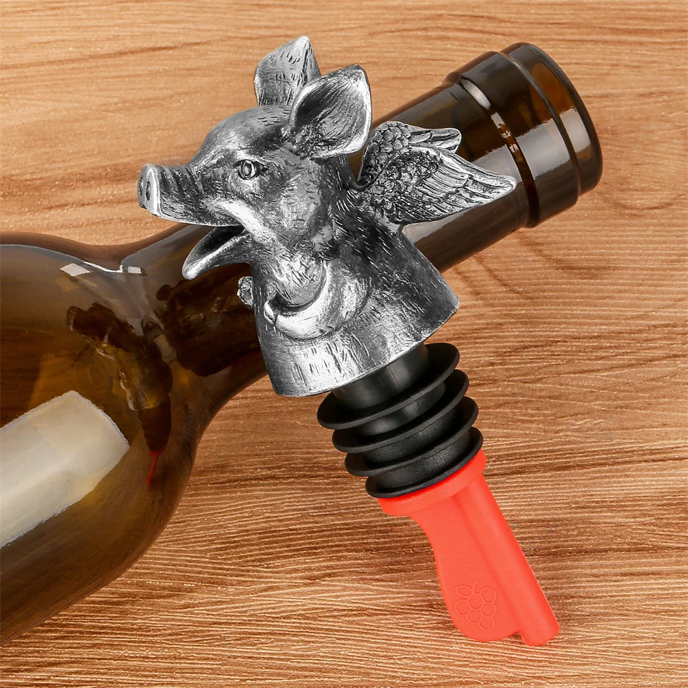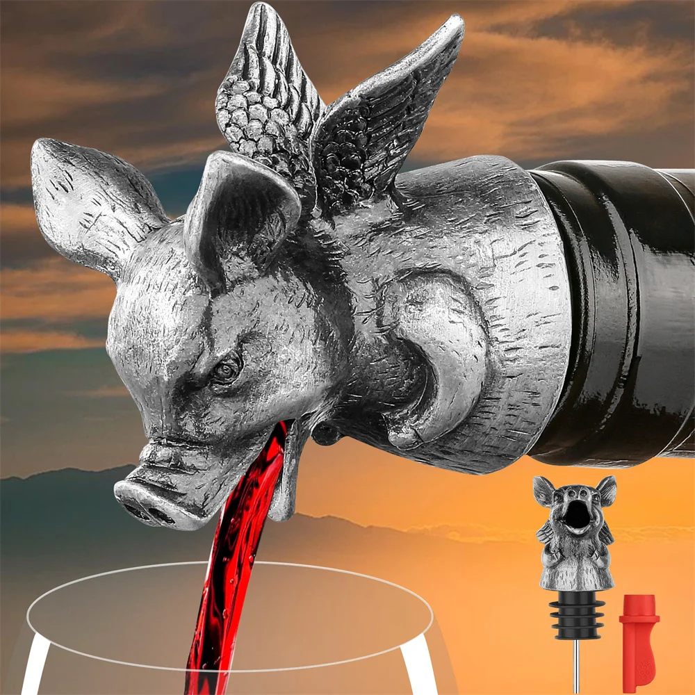 Vintage Wild Pig Head with Wings Pour Spouts Animal Bottle Stopper
