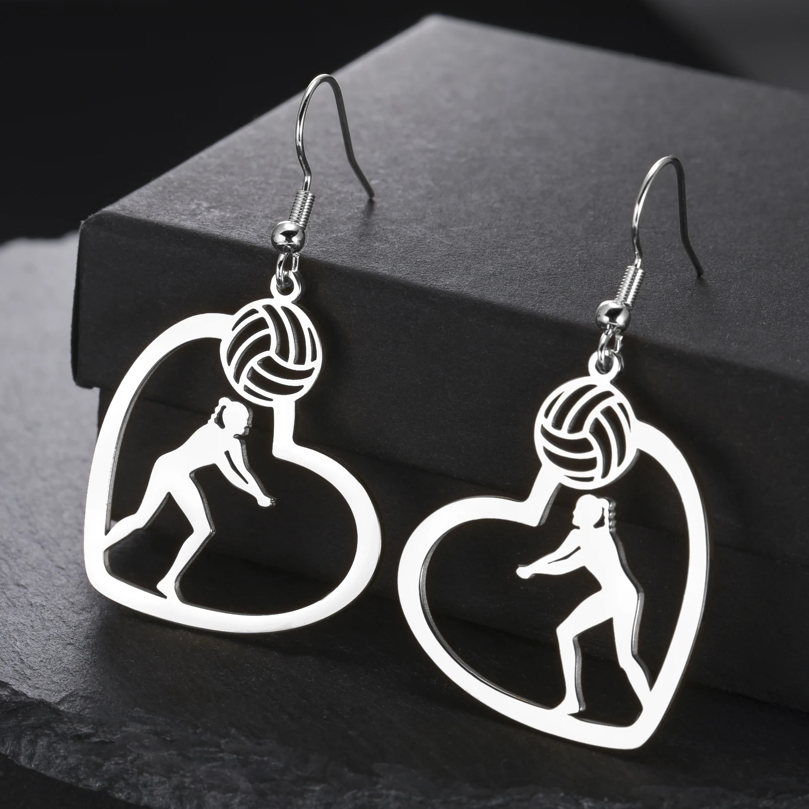 Volleyball Girl in Heart Necklaces Stainless Steel Pendant Neck Chain